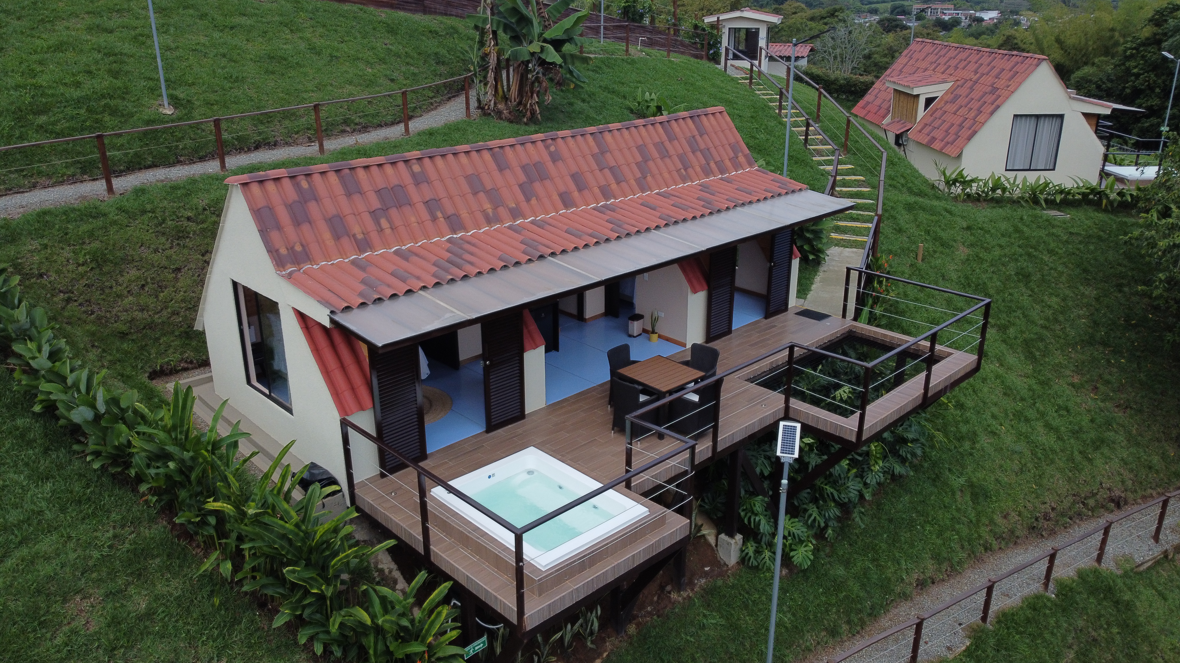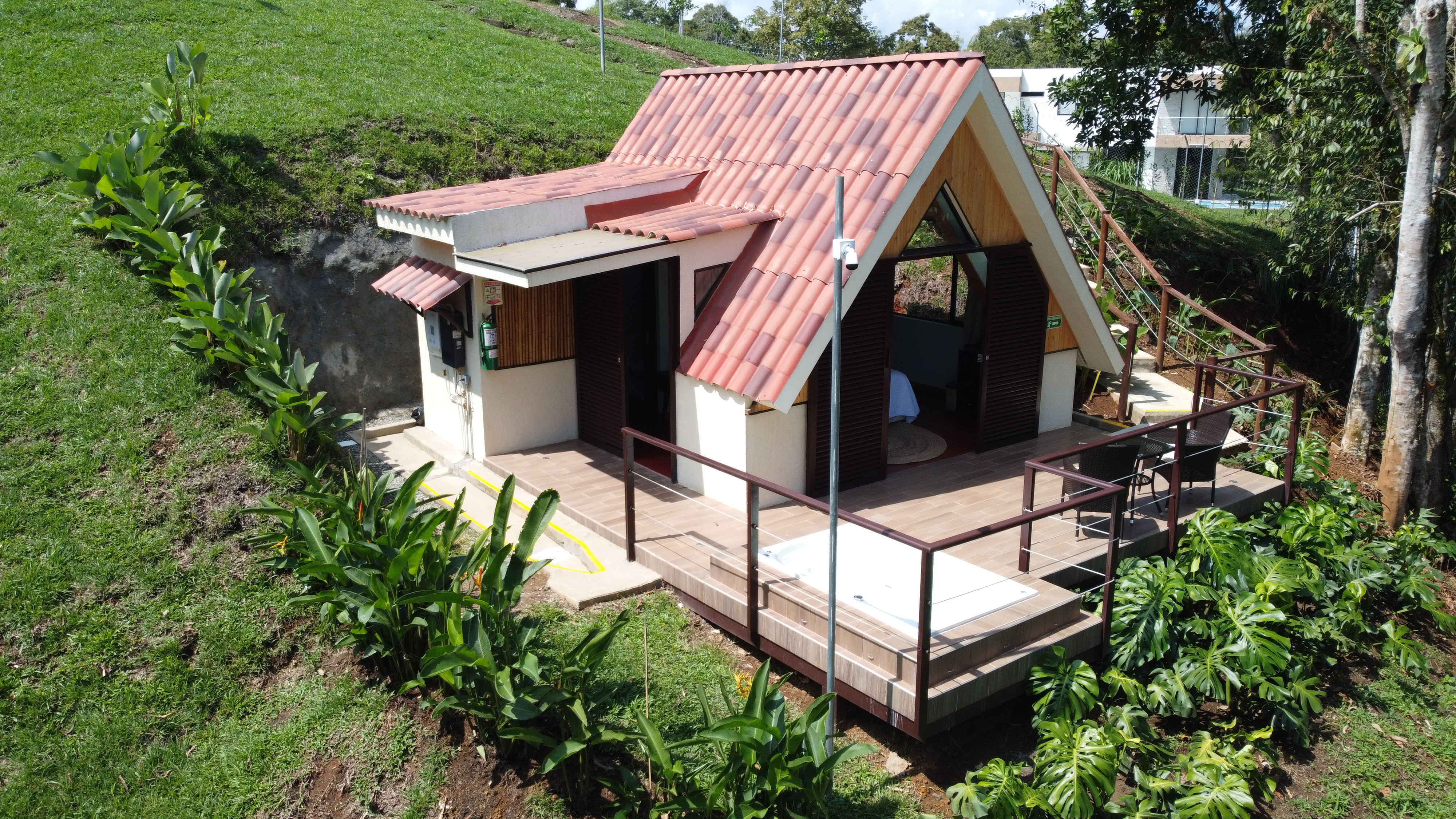 Nuestro alojamiento tiene un profundo respeto por la belleza natural del Paisaje Cultural Colombiano y las vistas panorámicas que rodean al hotel, en medio de exuberantes montañas, guaduales, aves y naturaleza.